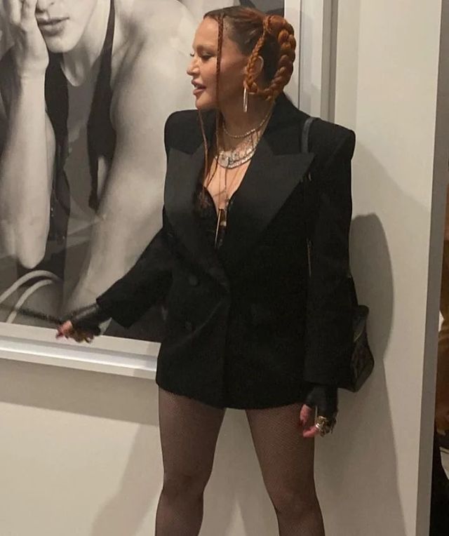 La Reina del pop llegó la noche de la apertura de la muestra junto a sus hijos mayores, Lourdes María y Rocco Ritchie, los tres vestidos completamente de negro. Madonna nos dió algunas señales para recordarnos que la famosa «Dita», alter ego que escribía las fantasías sexuales del libro, estaba todavía viva. Con un saco necro de la marca «YSL», shorts, medias de red y un corset de encaje, la cantante se mostró entusiasmada y emocionada al recordar su famoso libro tan denostado en su tiempo pero que hoy se ya es una obra de arte. Con el cabello largo, rojizo y dos trenzas atadas y fusta en mano, Madonna dio guiños para recordar su look (algo similar) durante el lanzamiento de su libro allá por 1992.