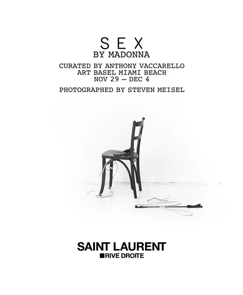 Para marcar el impacto duradero y el aniversario especial del libro, Madonna y Anthony Vaccarello, Director de diseño y arte de la firma «Yves Saint Laurent», decidieron revivir su contenido por primera vez en una exposición efímera en contexto del Art Basel Miami Beach 2022. Las fotografías de Steven Meisel se exhibirán como impresiones de gran formato en una caja temporal frente a la playa construida especialmente para la ocasión. Además, se realizará una re-edición del libro (agotado y descatalogado desde 1992) con una extremadamente limitada tirada de 800 copias publicadas por Callaway, Nueva York. La muestra será de acceso gratuito para mayores de 18 años frente a la playa a la altura de la calle 17 de Miami Beach y estará disponible a partir del 29 de Noviembre hasta el 04 de Diciembre desde las 10am hasta las 7 pm. También se subastarán copias firmadas en beneficio de la fundación de Madonna, «Raising Malawi».