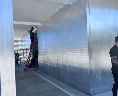 La muestra se llevó a cabo en una gran caja metálica de aspecto limpio y despojado que nos recuerda al metal de las tapas del libro «Sex». Grandes letras corpórenas ubicadas en lugares estratégicos mencionaban el nombre «Madonna», «Sex» e «Yves Saint Laurent». El interior completamente blanco e impoluto contenía a 12 grandes reproducciones de las fotografías más icónicas y representativas del libro.