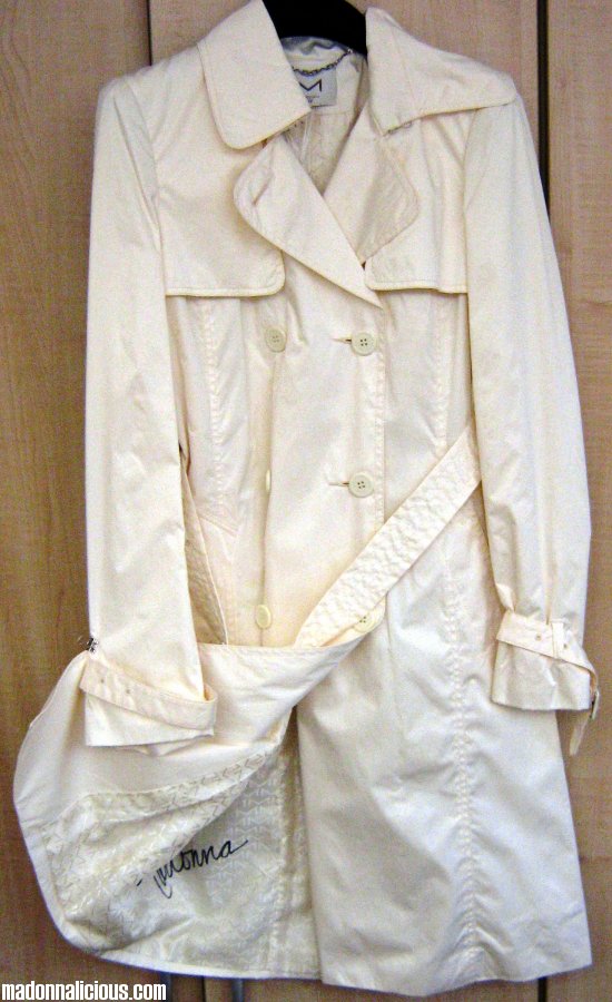 Una de las prendas favoritas de Madonna es una elegante gabardina en popelina de algodón y cuero, prenda que ella firmó y autografió y que fuera sorteada en los dichosos compradores el día del lanzamiento.