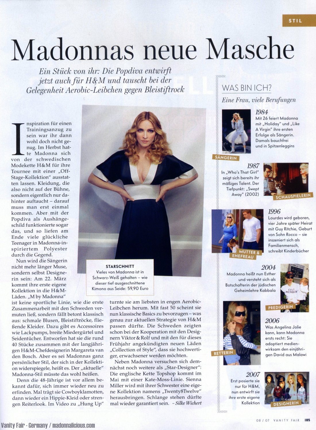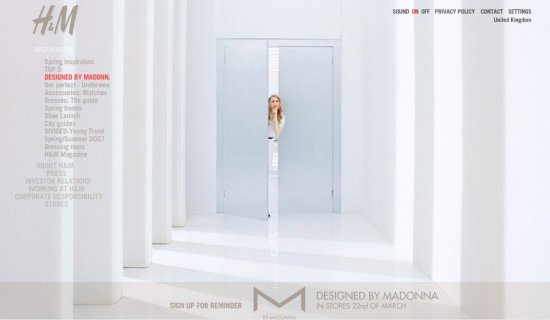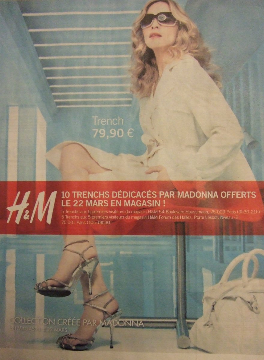 Madonna comentó: «No he ocultado mi amor por la moda. Trabajar con H&M fue un desafío creativo nuevo y emocionante. Estoy feliz con los resultados y espero usar M de Madonna junto con el resto del mundo”. La colección, titulada «M by Madonna», descrita como «que refleja el estilo atemporal, único y siempre glamoroso de Madonna», estuvo disponible en tiendas de 28 países del mundo desde fines de febrero de 2007. «M» incluye chaquetas, trenchs, blazers, vestidos kimono, faldas, principalmente en blanco, negro, caqui y gris. Las telas varían desde seda, lana, jersey de viscosa y lycra que esculpe el cuerpo. Toda la línea está adornada con un pequeño logotipo «M» en forros, cremalleras y botones. Además, el look «M by Madonna» incluye una línea completa de accesorios, desde anteojos de sol, bolsos de fiesta y bolsos de mano e incluso cinturones delgados de cuero.