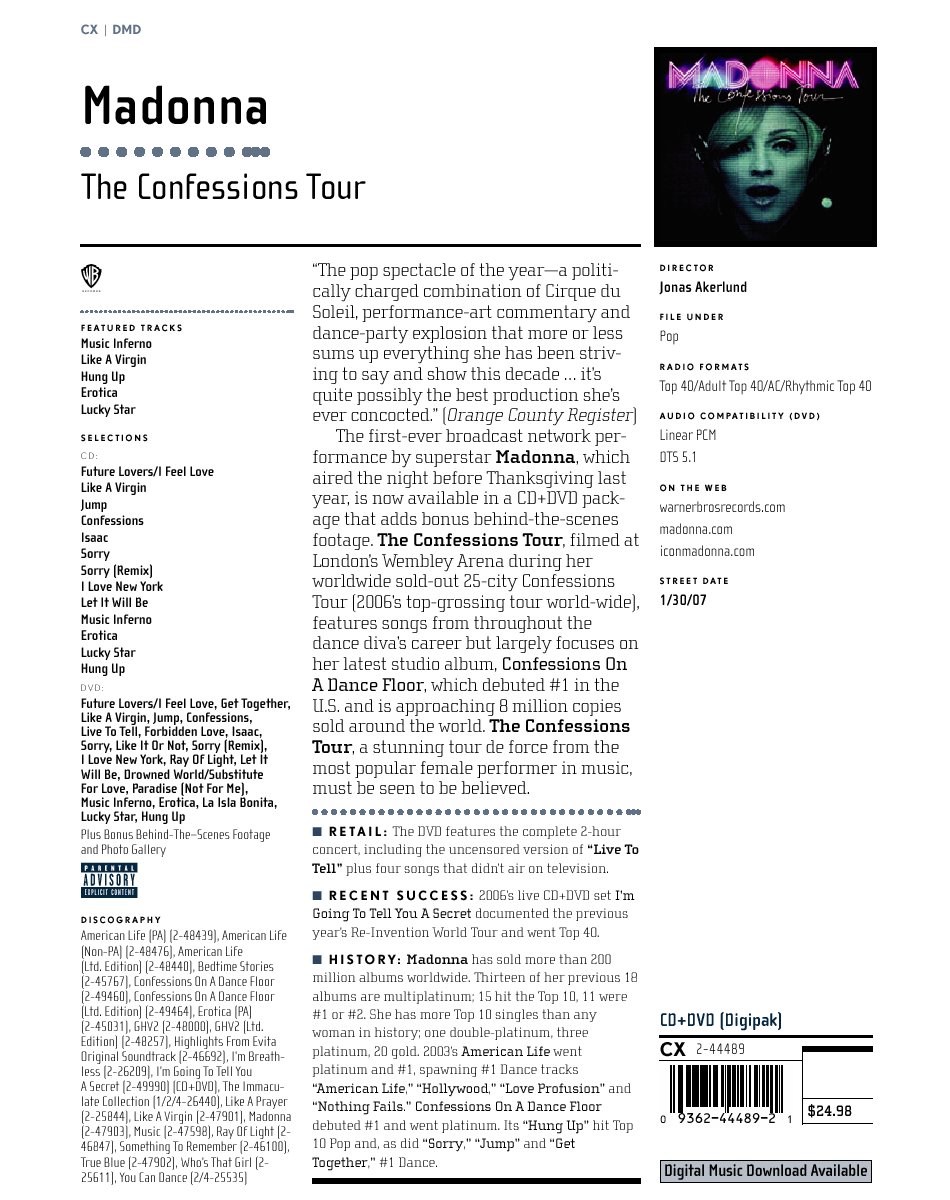 - El video de la gira «The Confessions Tour» se editó en formato combo CD/DVD y DVD solo, el 26 de Enero de 2007 a través de Warner Bros.