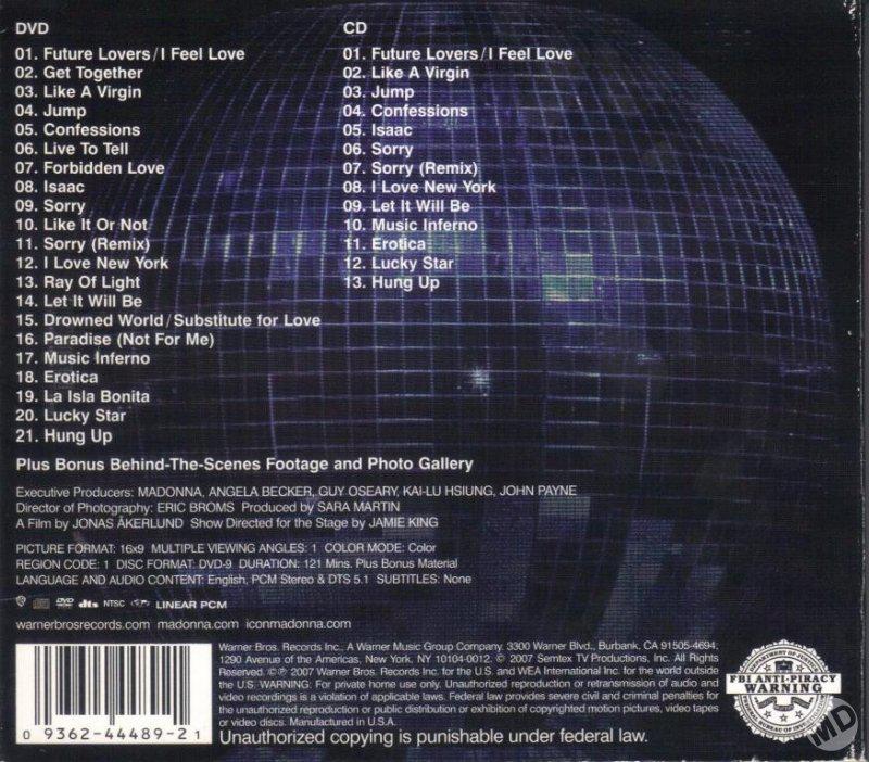- El CD no contiene el show completo, sino que se formó por 13 tracks especialmente seleccionados por Madonna que se consideran que son los más representativos e importantes del espectáculo. Mientras que la edición digital incluyó dos canciones más como bonus track.