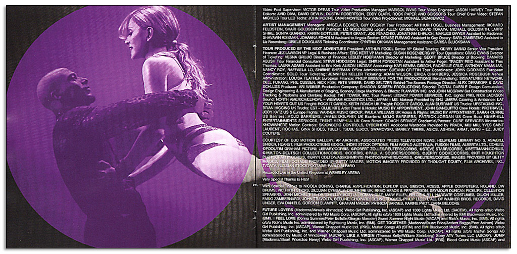 - Si bien Madonna ya había lanzado casi todas sus últimas giras en formato VHS, DVD o Blu-ray (con excepción de «The Blond Ambition» en 1990 y «The Re-Invention Tour» en 2004), éste es el segundo CD con grabaciones en vivo oficial del catálogo de Madonna. El primero fue el CD que acompañó al documental «I’m Going to Tell You a Secret» lanzado en Junio de 2006.
