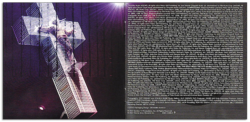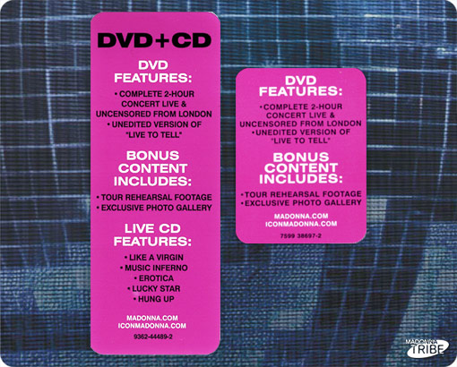 - El DVD incluye el show completo y sin censuras, diferente de la versión editada y censurada por la NBC para su transmisión por televisión en noviembre de 2006 en donde se eliminó la primera parte de «Live to Tell» (en donde Madonna aparece sobre la cruz) y se cortó la canción «Paradise (Not for Me)». Sin embargo, debido a esta performance, el DVD fue prohibido en Malasia, Singapur y otros países de Asia.