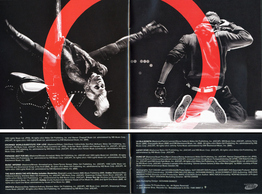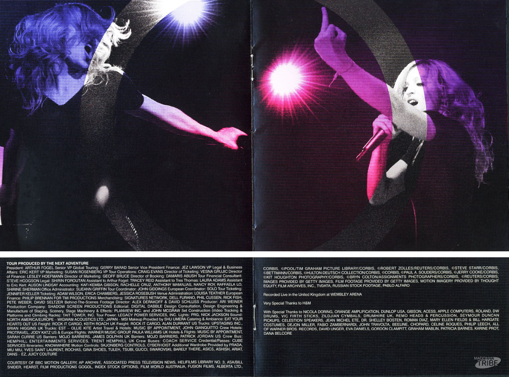 El booklet no incluía las letras de las canciones y contenía fotos del show tomadas por Guy Oseary. Los librillos eran exactamente iguales anto para la edición digipack como para la edición DVD box.