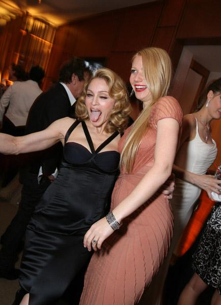 La Reina del Pop no podía estar ausente en este evento, como todos los años, Madonna asistió para codearse con la crema de Hollywood. Con un estilo impecable y elegantísimo, la cantante se mostró con un impresionante vestido negro de seda con tirantes cruzados y falta con cola de «Dolce & Gabbana». Para cortar con los rumores de separación y de crisis en su matrimonio, la diva se mostró muy cariñosa y no se despegó ni un minuto de su marido Guy Ritchie. Madonna compartió la noche con su gran amiga Gwyneth Paltrow y su manager Guy Oseary.