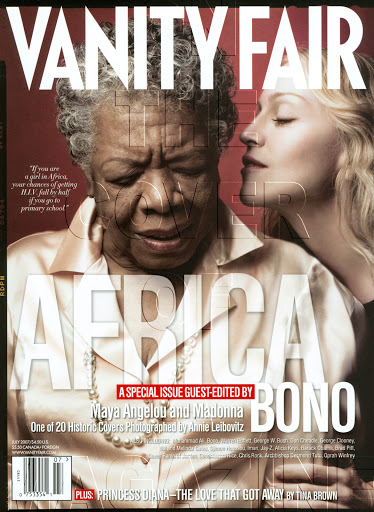 En Junio de 2007, Madonna realizó varias fotografías a cargo de Annie Leibovitz para ilustrar la portada de la versión inglesa de la revista «Vanity Fair», edición Julio. En las fotos vemos a Madonna sobre un fondo colorado posando frente a la cámara con una actitud seria y reflexiva; junto a ella también participaron el actor Djimon Hounsou y la escritora Maya Angelou. Las fotos se publicarían en una edición especial de revista dedicada al situación de Africa en donde se publicarían una 20 portadas diferentes con diversas personalidades como Bono, Barack Obama, George Clooney, Brad Pitt entre otros. De la mayoría de ellos se realizaron dos portadas diferentes. En el caso de Madonna, fueron las más buscadas y por ende, las que más escasearon y de estas dos, la versión con Maya Angelou fue la más difícil de encontrar.
