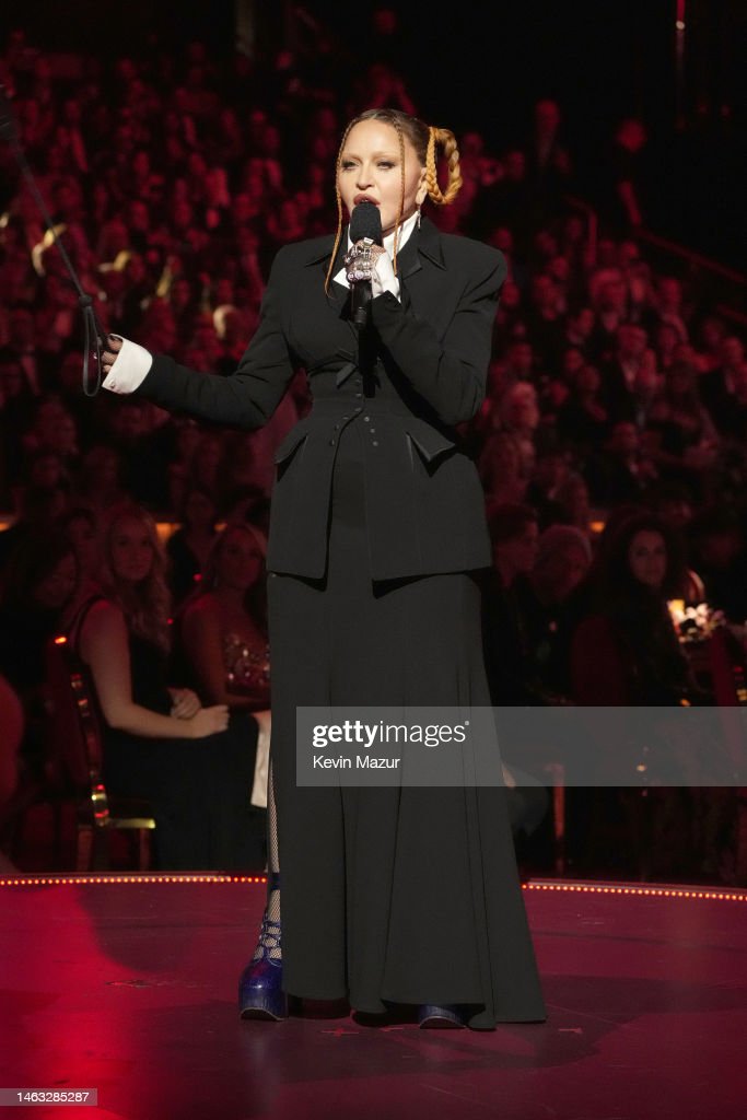 Madonna salió al escenario mientras sonaba su gran éxito «Vogue», sobre las pantallas se proyectaron algunas imágenes con sus estilos más icónicos con su estricto y severo look. Para evitar las críticas con respecto a su cuerpo, su edad y su manera de vestir provocadora, la cantante escogió un atuendo que la cubria de pies a cabeza; sin embargo, los detractores no se quedaron callados y comenzaron a atarcarla mencionando su «irreconocible» rostro. La tarea de Madonna era presentar la performance del mega hit «Unholy» a cargo de, precisament, Kim Petras y Sam Smith. Esto fue lo dijo durante su discurso: «¿Están listos para una pequeña controversia? Esto es lo que he aprendido después de cuatro décadas en la música. Si te llaman impactante, escandalosa, problemática, provocadora o peligrosa, definitivamente estás en lo cierto. Estoy aquí para dar las gracias a todos los rebeldes, forjando un nuevo camino y soportando el calor por todo ello. Todos los alborotadores que hay por ahí necesitan saber que su valentía no pasa desapercibida. Te ven, te escuchan y, sobre todo, te aprecian. Así que ahora, hablando de controversia, es un gran placer presentar a dos artistas increíblemente talentosos que se han elevado por encima del ruido, la duda y las críticas en algo hermosamente profano. Aquí hay dos ganadores del premio Grammy, Sam Smith y Kim Petras».