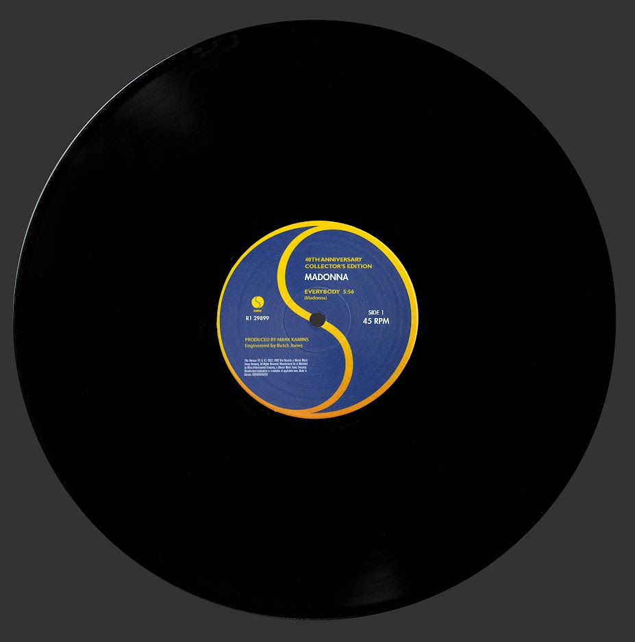 Con motivo de celebrarse el 40° aniversario del lanzamiento del primer single de Madonna, «Everybody» (editado originalmente el 06 de Octubre de 1982), Rhino Music y Warner Records han decidido poner a la venta y para el deleite de todos los fans, la re-edición del single en format vinilo. El disco, se puso en el mercado el 25 de Noviembre de 2022 en contexto del «Black Friday» del «Record Store Day» y consiste en una edición limitada con un nuevo arte de tapa para el deleite de todos los fans y coleccionistas.
