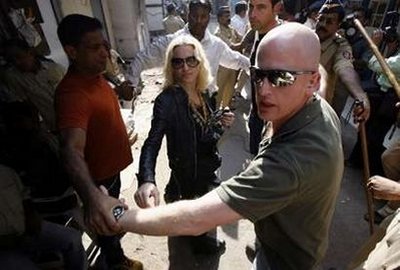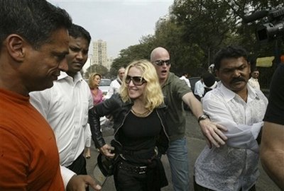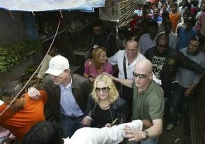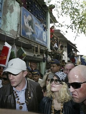 Madonna y su familia llegaron a Mumbai el martes 08 de Enero por la mañana en un avión privado desde la histórica ciudad de Udaipur, en el oeste de India. Vestida con una camiseta negra, jeans y una chaqueta, la estrella del pop junto con su esposo y guardaespaldas deambulaban por los barrios pobres de Ambedkar Nagar y más tarde visitó un mercado de pulgas en la capital financiera de India. Los residentes de los barrios marginales derramaron pétalos de rosas sobre Madonna para darle la bienvenida, aunque pocos sabían quién era la celebridad.