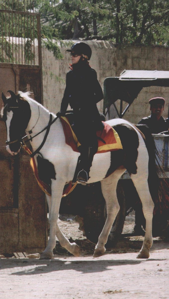 Por la tarde, la diva se tomó el tiempo para realizar una visita al desierto de Rajasthan en donde se tomó el tiempo para una de sus actividades favoritas: la cabalgata. La diva encabezó una caravana montada en su caballo para una recorrida de 28 km a través del Fuerte Chanwa Luni; detrás en la comodidad de una camioneta 4×4 la seguían su marido y sus hijos.