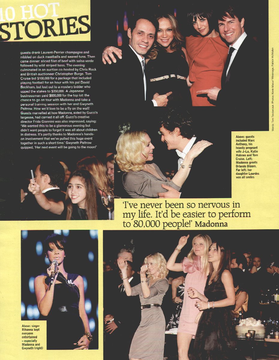 El cómico Chris Rock fue el maestro de ceremonias y condujo una subasta benéfica. El cubierto costaba entre U$S 2.500 y 10.000 y la noche fue amenizada con actuaciones a cargo de Alicia Keys, Timbaland y Rihanna. Tom Cruise apostó U$S 100.000 por un paquete que incluía estar con Alex Rodriguez en el estadio de los Yankees y una hora jugando al fútbol con David Beckham. Pero se lo llevó otro postor, por U$S 360.000. La puja más alta fue de U$S 600.000 por acompañar a Madonna de gira y tomar una clase de baile con ella y su amiga Gwineth Paltrow. Además, por la alfombra roja desfilaron celebridades como Katie Holmes, Demi Moore, Ashton Kutcher, Gwyneth Paltrow y Jennifer Lopez junto a su marido Mark Anthony, además de Salma Hayek y su marido François-Henri Pinault, propietario del gigante francés PPR, dueño de Gucci. Al final de la noche se recaudaron U$S 3,7 millones.