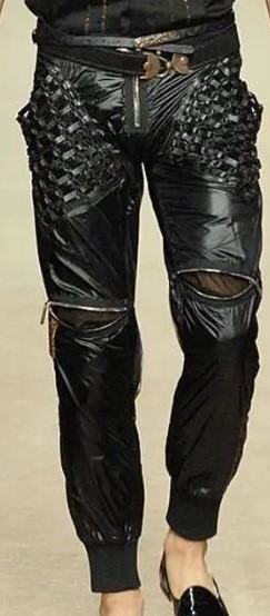 - Pantalón de tela de paracaídas de nylon negro con detalles de cremalleras en rodillas de la colección Hombres primavera-verano 2008 de Roberto Cavalli.