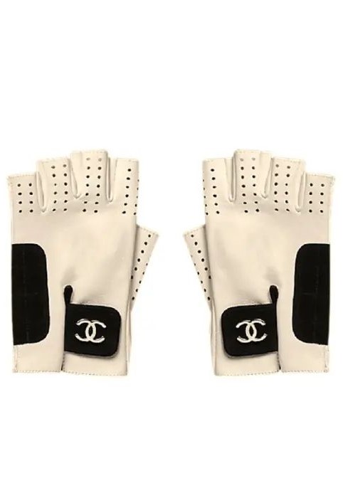 - Guantes de cuero en color beige con detalles en negro de «Chanel».