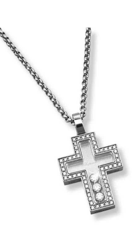 - Colgante con crucifijo en oro blanco y diamantes modelo «Happy Diamonds» de la firma «Chopard».