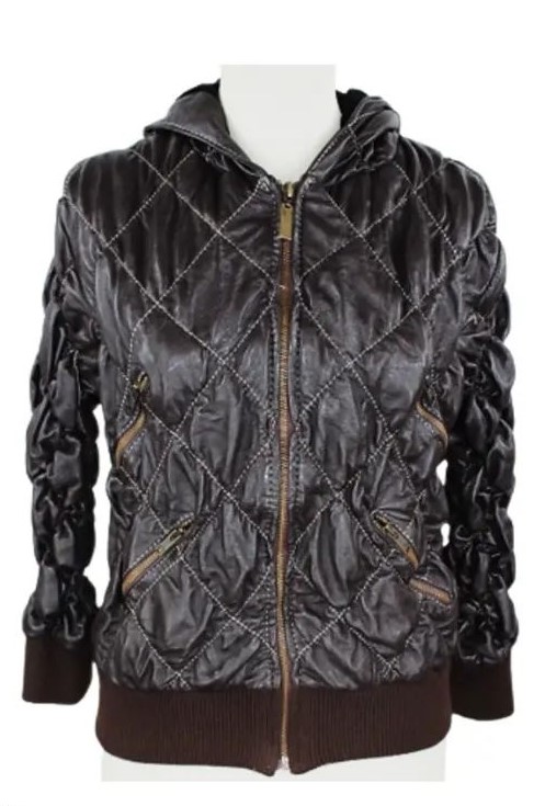 - Chaqueta estilo «bomber» de cuero negro modelo «Rombos» con costuras entrecruzadas de Charlotte Solnicki.