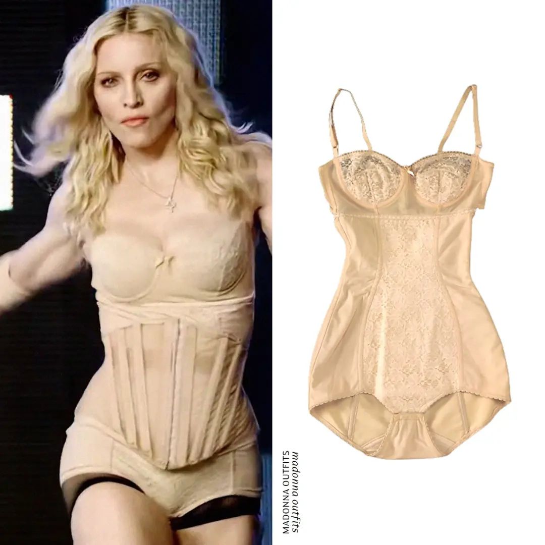 - Body de seda en color nude acompañado de corset rígido de la colección otoño-invierno 1996 de «Dolce & Gabbana».