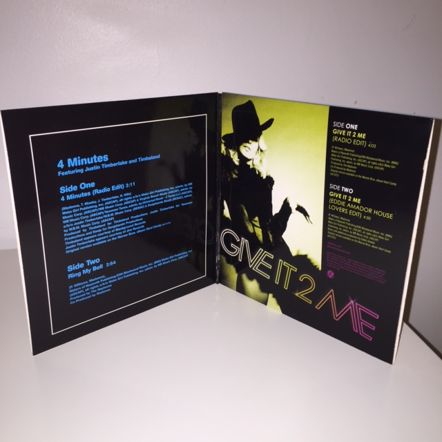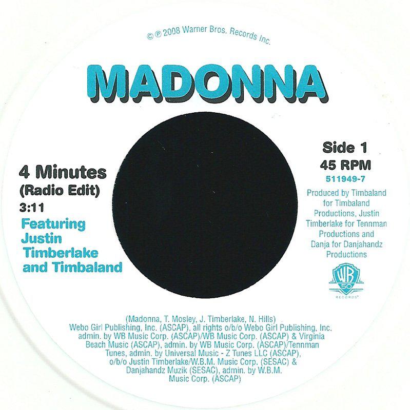 En Agosto de 2008 se lanzó una edición especial ideal para todo coleccionista y que complemente a la perfección todas las ediciones físicas del single «4 Minutes». En este caso se trata de una edición especial y limitada en vinilo 7″ del track «4 Minutes» en combinación con el hit «Give it 2 Me» (segundo single del disco «Hard Candy«). Pero ¿qué tiene de especial este lazamiento?. En primer lugar consiste en un lanzamiento doble de los dos primeros singles del LP y además, este fue el primer vinilo 7″ lanzado en USA con cubierta con diseño desde el último realizado en 1990, «Keep it Together» y desde el último vinilo 7″ del catálogo de Madonna en 2003 con «American Life». Para finalizar, esta edición sería la última edición física de un disco de Madonna en este formato. Por último, esta edición contiene a la canción «Ring my Bell», canción que sólo estuvo disponible en la edición para Japón de «Hard Candy» y como bonus track de descarga digital en iTunes Store.