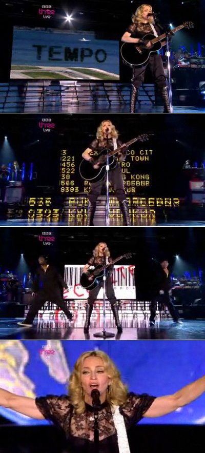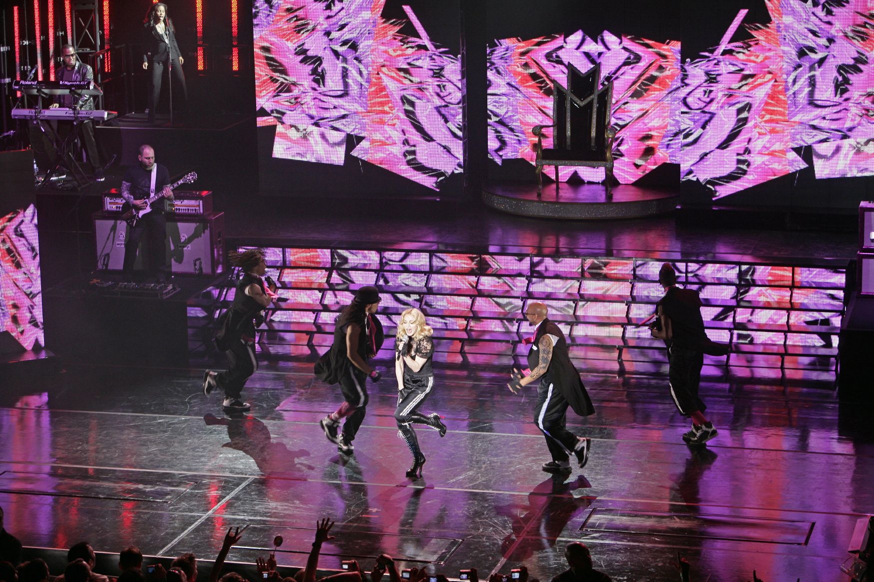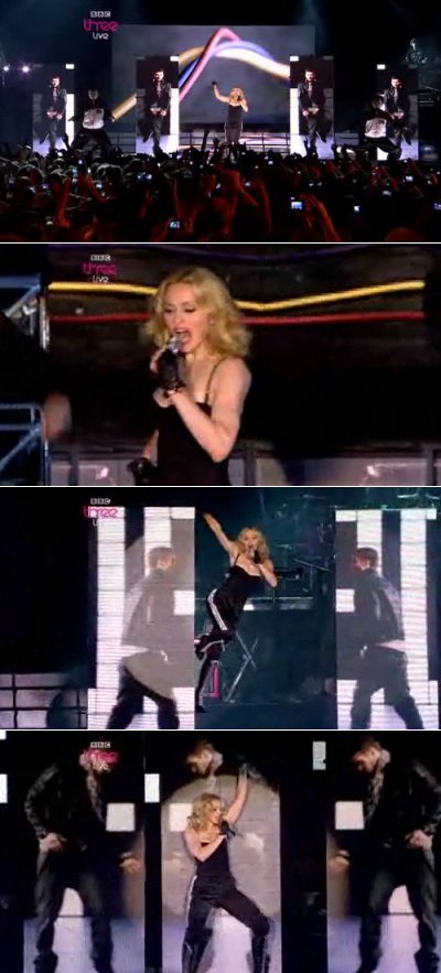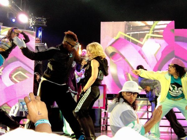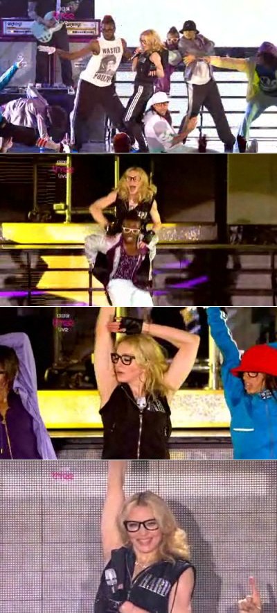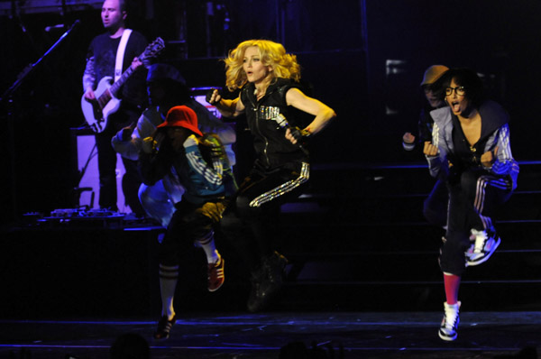 Un nuevo tema del disco «Hard Candy» comienza ahora, se trata de «Give it 2 Me» que saldría como segundo single un mes después. Madonna interactúa con Pharrell Williams quien aparece en las pantallas. Ahora luciendo una chaqueta deportiva sin mangas con las inscripciones en color plata «Hard» en la parte delantera y «Candy» en la parte de atrás.