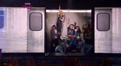 «Music» fue el hit escogido para cerrar el show en una versión remix usando un sample de Fedde Le Grand del tema «Put Your Hands Up for Detroit» en donde Madonna baila y canta con una energía insuperable junto a todos sus bailarines para finalizar el cuadro con las pantallas de fondo simulando un tren de subterráneo (esta misma versión como así su coreografia se repetiría durante la gira «The Sticky and Sweet Tour»).