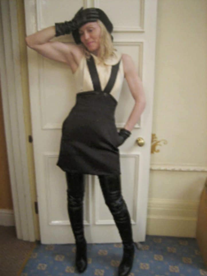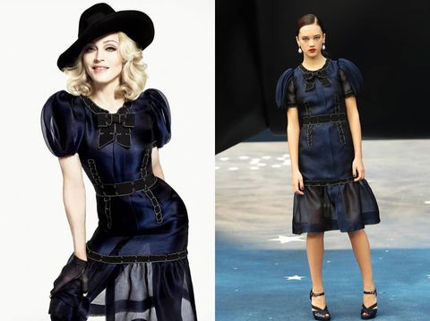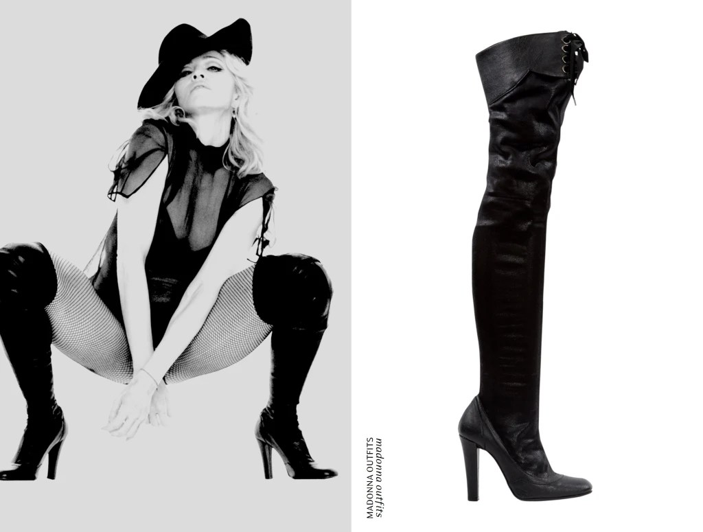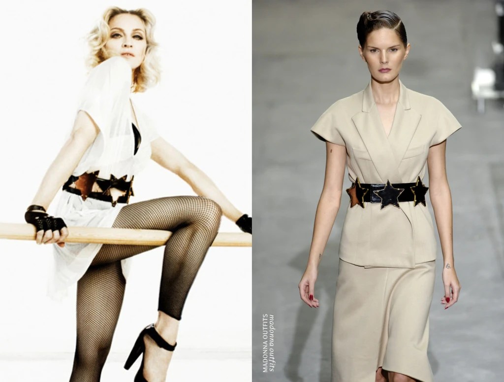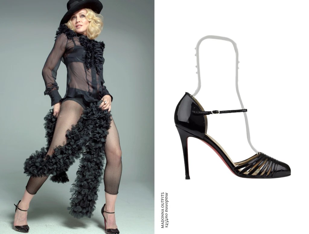 - Vestido de seda negro con mangas largas y abullonadas en los puños y detalles de múltples cadenas doradas de la colección otoño-invierno 2008 de «Givenchi» (este mismo vestido fue usado por Madonna anteriormente durante la promoción del disco «Hard Candy»).
