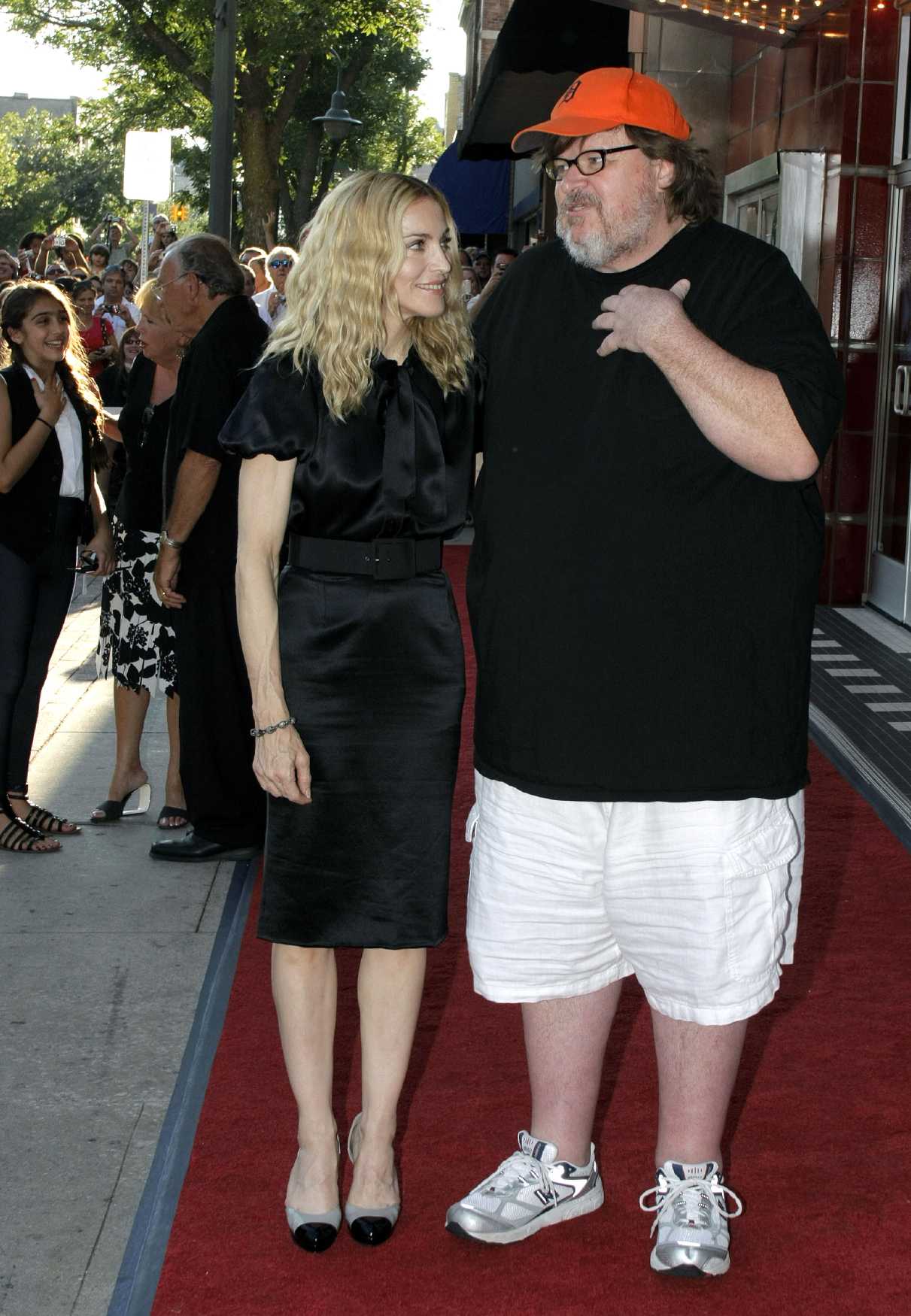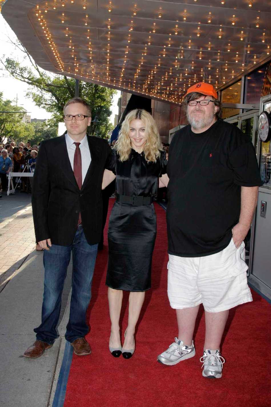 Moore, quien ganó un Oscar por su documental de 2002, «Bowling for Columbine», dijo que se sentía honrado de poder llamar amiga a Madonna. «Ella tiene un corazón tan increíble y un espíritu tan generoso. Ella hace mucho con el resplandor de las luces para hacer del mundo un lugar mejor», comentó. Por su parte, Madonna devolvió el cumplido elogiando a Moore: «No hay muchos modelos a seguir para nosotros en el mundo, o personas a las que podamos admirar», dijo. «Las personas que no tienen miedo de arriesgarse, las personas que no tienen miedo de defender las cosas y ser impopulares, de ir contra la corriente, piensan fuera de la caja. Y necesitamos, y necesito, a Michael Moore en mi vida». Durante el evento Michael Moore pidió al público que cantara el «Feliz Cumpleaños» a Madonna quien se mostró muy contenta; además la cantante realizó una breve rueda de preguntas y respuestas a cargo de Moore. Ella y su familia se quedaron para ver la película completa. Al finalizar, la estrella y su grupo retornaron velozmente a New York para continuar con los ensayos de su gria «The Sticky and Sweet Tour» próxima a ser lanzada.