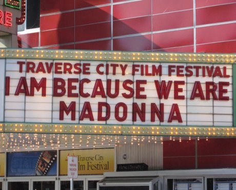 Madonna llegó a la ciudad turística del norte de Michigan el sábado 20 de agosto de 2008 para presentar su documental, «I Am because We Are», un punto culminante del «Festival de Cine de Traverse City»; evento fuera cofundado por el cineasta, autor y nativo de Michigan, Michael Moore. Cientos de fanáticos vitorearon desde detrás de las barricadas cuando Madonna, con un vestido negro, tacones altos y anteojos de sol, salió de un vehículo utilitario deportivo negro que se detuvo frente al «State Theatre» para abrazar a un Moore que la esperaba con un look casual de camiseta y gorra de béisbol.