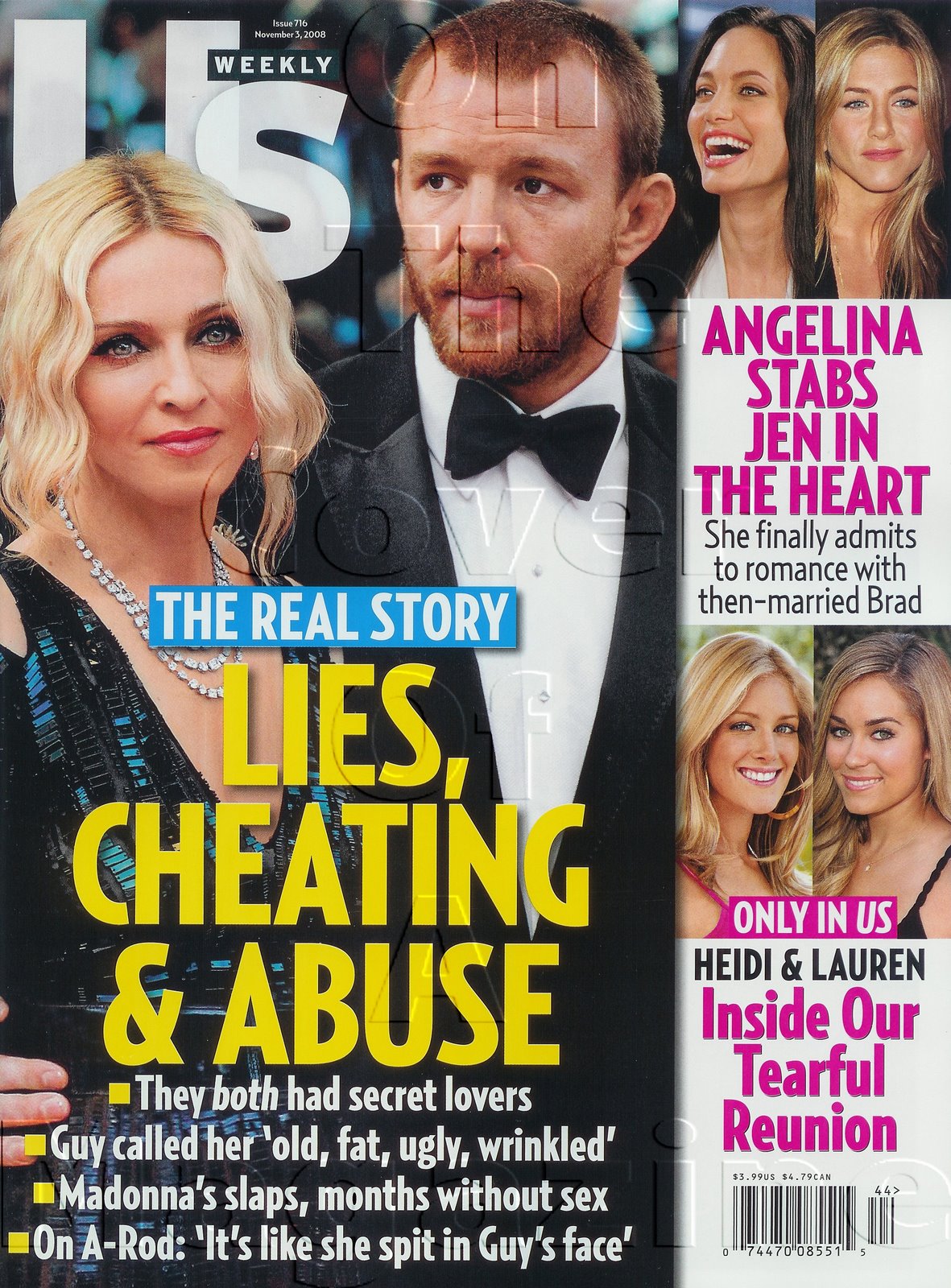 En julio, Alex Rodriguez se separa de su esposa Cynthia Rodriguez luego de confesarle que con Madonna eran «almas gemelas espirituales». La mujer no tardó en comentar en los medios y hacer responsable de su divorcio a la cantante. Ante todo estos conflictos, Madonna salió a desmentir los rumores públicamente en la revista «People«: «Mi esposo y yo no planeamos divorciarnos. Llevé a mis hijos a un partido de los Yankees. No tengo ninguna relación sentimental con Alex Rodríguez”, dijo Madonna. No tengo nada que ver con el estado de su matrimonio o qué camino espiritual puede elegir estudiar», agregó Madonna en relación al ingreso de Rodriguez a la kabbalah y continuó: «He aprendido a lo largo de los años a no tomar muy en serio las acusaciones y los muchos informes falsos sobre mí. También aprecio cómo la ficción y la realidad parecen ser percibidas como lo mismo por las personas que leen tanto los periódicos como Internet».