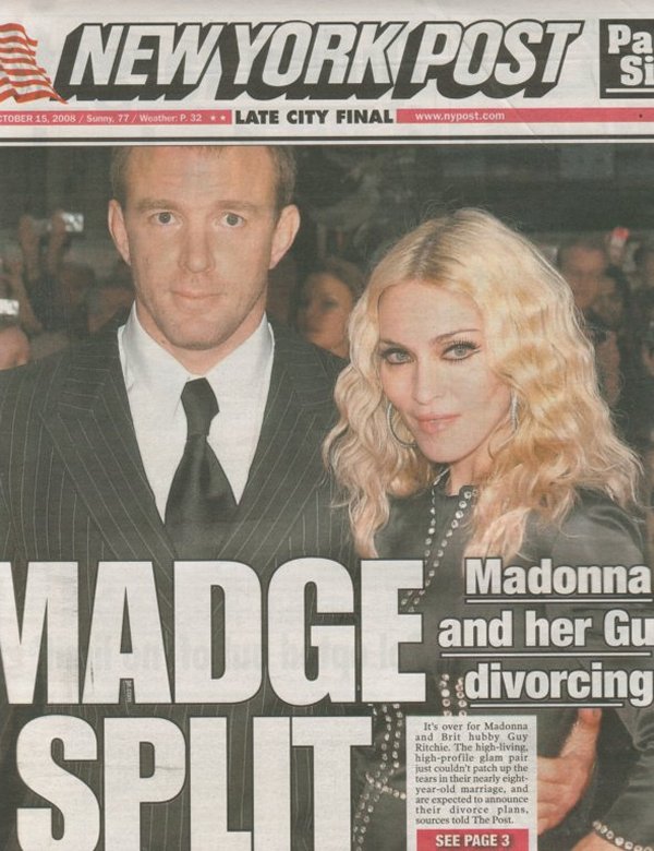 Días más tarde, se los vio juntos en el pub de Ritchie celebrando el cumpleaños de él. Madonna se retiró con sus hijos temprano y Ritchie quedó celebrando a puertas cerradas hasta la madrugada. Esa fue la última vez que se los vio juntos en público. Madonna continuó con su gira recorriendo el mundo lo que facilitó la separación, para octubre los abogados de ambas partes realizaron la presentación formal del pedido de divorcio.