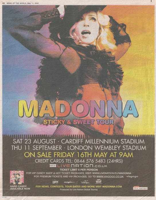 Único show en Londres en el «Wembley Stadium» el 11 de septiembre con 73.349 personas entre las que se encontraban celebridades y amistades de Madonna como Gwyneth Palthrow, Kate Hudson, Naomi Campbell, Nicole Kidman, Fergie, Katy Perry, Penelope Cruz, la Princesa Mette-Marit, princesa de Noruega y Rosario, esposa del príncipe de Bulgaria, príncipe Kyril. Otra vez, la canción pedida fue «Express Yourself».