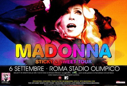 El 06 de septiembre, 57.690 personas llenaron el «Estadio Olímpico» de Roma con Benny Benassi como acto de apertura. Esta fue una de las noches preferidas de Madonna hasta el momento debido a la gran aceptación y reacción del público. En la canción pedida, Madonna interpretó versos de «Like a Virgin» y dedicó la canción al Papa Benedicto XVI diciendo: «él me ama porque soy una criatura de Dios». Luego de esto, muchos periódicos y la prensa de Italia consideraron el comentario como algo «ofensivo sin motivo o justifiación». Madonna pasó un segundo día en Roma antes de seguir viaje y en su jornada libre decidió visitar la histórica iglesia de la «Santa Croce».