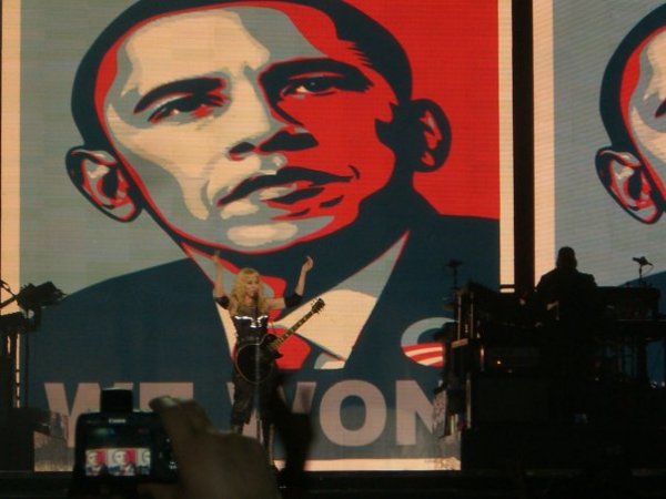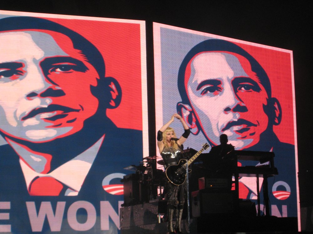 Una noche muy especial para Madonna quien se presentó el 04 de noviembre en el «Petco Park» de San Diego ante un lleno total de 35.743 personas. Esta fue la noche en que Barack Obama fue electo presidente de los Estados Unidos y Madonna no disimuló su felicidad: «esta es una noche histórica, es muy importante y ustedes son afortudados de vivirla y compartirla. Este es el comienzo de un nuevo mundo». Madonna interpretó «Express Yourself» mientras la cara de Obama se proyectaba en las pantallas con la frase «Ganamos». Para el final con «Give it 2 Me», Madonna usó una camiseta negra con la cara del nuevo presidente y la frase «Express Yourself».