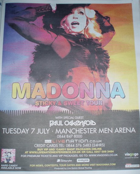 El show programado para el 08 de julio en el «MEN Arena» de Manchester tuvo que adelantarse un día y pasó al día 07 igualmente tuvo un lleno total con 13.456 personas. El show se desarrolló con normalidad, Madonna estuvo de muy buen humor y en el segundo segmento hizo referencia a Michael Jackson ya que ese día había sido el funeral del cantante. Durante «4 Minutes», la cantante estrenó una gafas futuristas de Louis Vuitton.