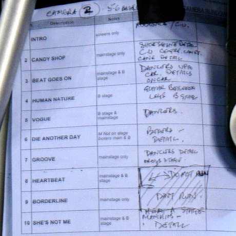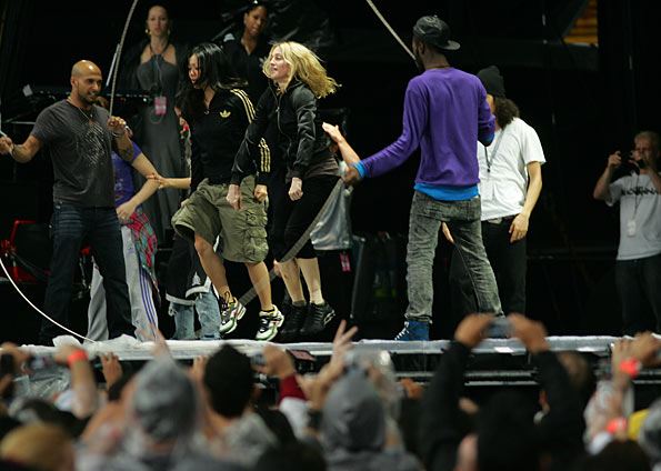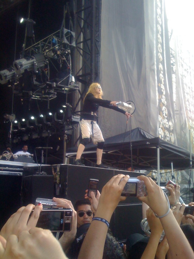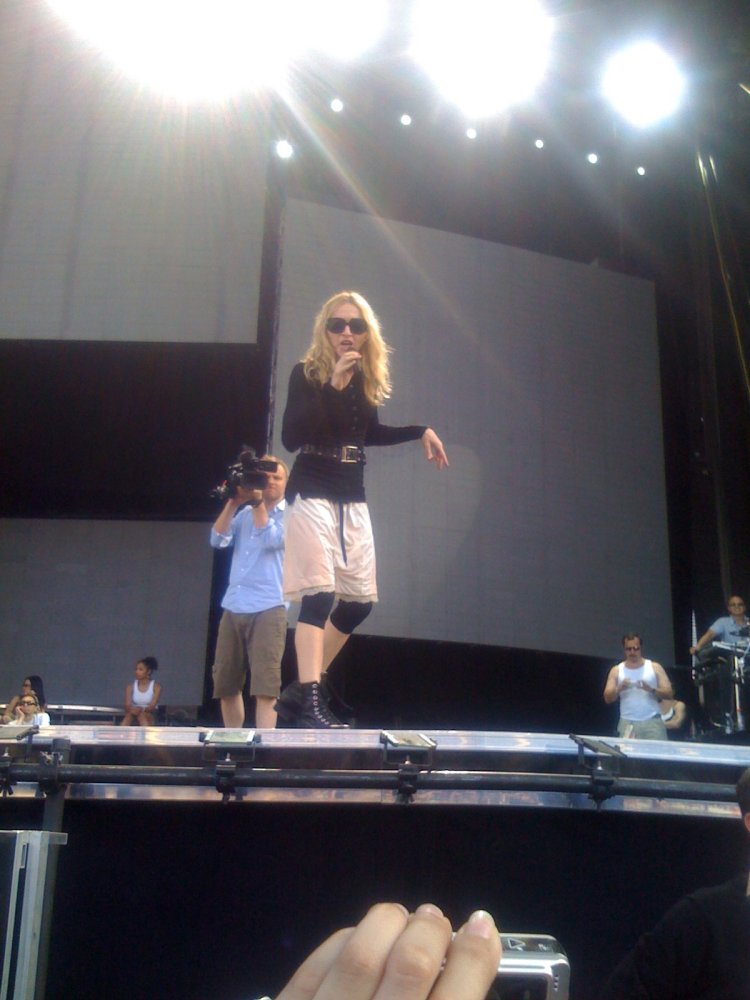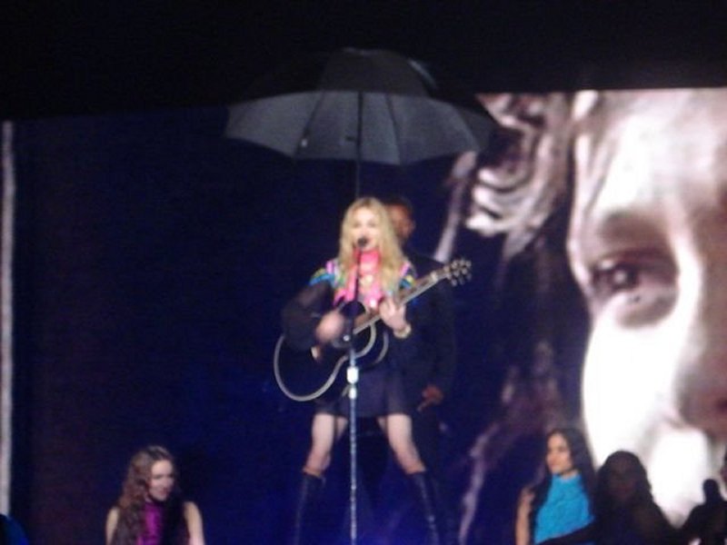 Durante «Human Nature» un guardaespaldas sostuvo un paraguas sobre la cantante, lo mismo ocurrió durante las canciones en que ella tocaba la guitarra. Madonna tuvo varias caídas leves durante «Heartbeat» y «She’s Not Me» mientras pedía que la lluvia se detuviera en el micrófono. Para el segmento «Gypsy», se cambió las elegantes botas de Stella McCartney por unas un poco más seguras y para «4 Minutes» Madonna llegó tarde al escenario comenzando la canción varios versos después de tiempo. Como canción pedida se interpretó «Express Yourself».