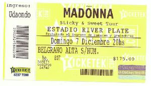 Se comenta que Madonna estaba un poco molesta debido a una dificultad de logística que demoró en la llegada de las partes del escenario de manera que los shows que se tenía programados para los días 03, 04, 06 y 07 de diciembre, tuvieron que moverse un día más para las noches del 04, 05, 07 y 08 de diciembre lo que la obligaba a actuar un día viernes, cosa que ella no hacía desde el 2001 para respetar la tradición de la kabbalah. Madonna se presentó en el «Estadio River Plate» ante una audiencia 263.693 personas.