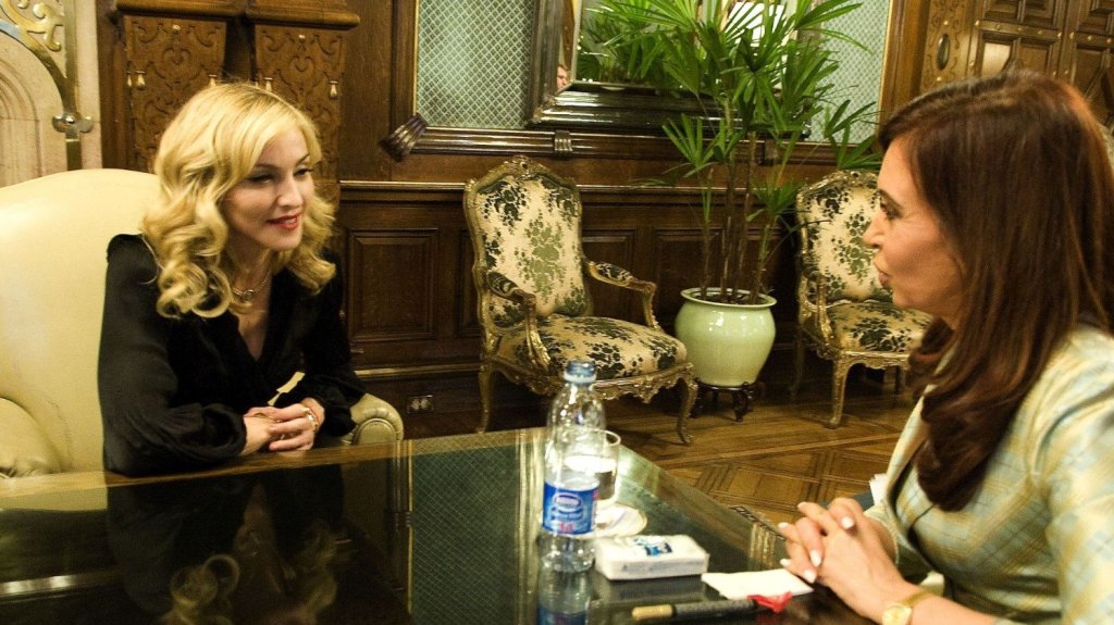 El martes 02 de diciembre, mientras esperaba que se solucione la llegada del escenario, Madonna fue invitada a la Casa Rosada, casa de gobierno de Argentina para tener una audiencia con la por entonces presidenta Cristina Fernández de Kirchner. El lugar ya era habitual para la cantante ya que allí mismo se había reunido con el presidente Carlos Menem en 1993 y luego filmaría la famosa escena del balcón de «Evita». Esta vez, la mandataria argentina la recibió muy afectuosamente, reunión que duró poco más de una hora y en la que también participó Ingrid Betancourt (colombiana quien estuviera secuestrada más de siete años por la FARC). Durante la reunión, las mujeres hablaron de sus trabajos, de la situación política de Estados Unidos y de asuntos personales. Se comenta que Madonna habló sobre su pasión por los caballos y que Cristina Kirchner mencionó su afición por la jardinería.