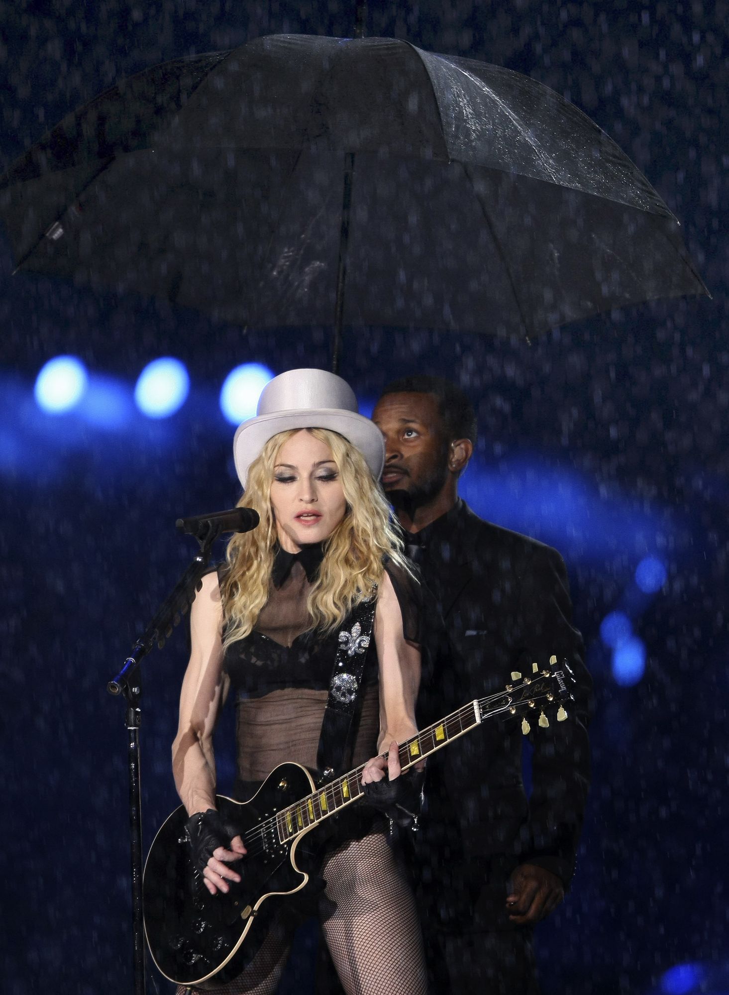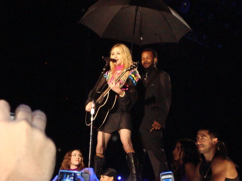 Por la noche, la intensa lluvia no había cesado lo que provocó la ofuscación de la Reina del Pop. Por primera vez, Madonna cambió su atuendo en varias canciones para estar más segura ante eventuales caídas por la lluvia (que no faltaron por supuesto). Para el inicio, Madonna salió con una chaqueta negra y botines cortos con suela de goma para evitar deslizamientos.