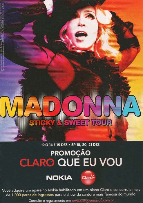 Penúltima parada de la gira «The Sticky and Sweet Tour» en el «Estadio Maracaná» de Rio de Janeiro en donde Madonna se presentó ante 107.000 personas con lleno total las dos noches. Durante el primer día ocurrió una gran tormenta lo que obligó a todo el equipo a realizar un ensayo general en un lugar cerrado del estadio; Madonna no se veía de muy buen humor.