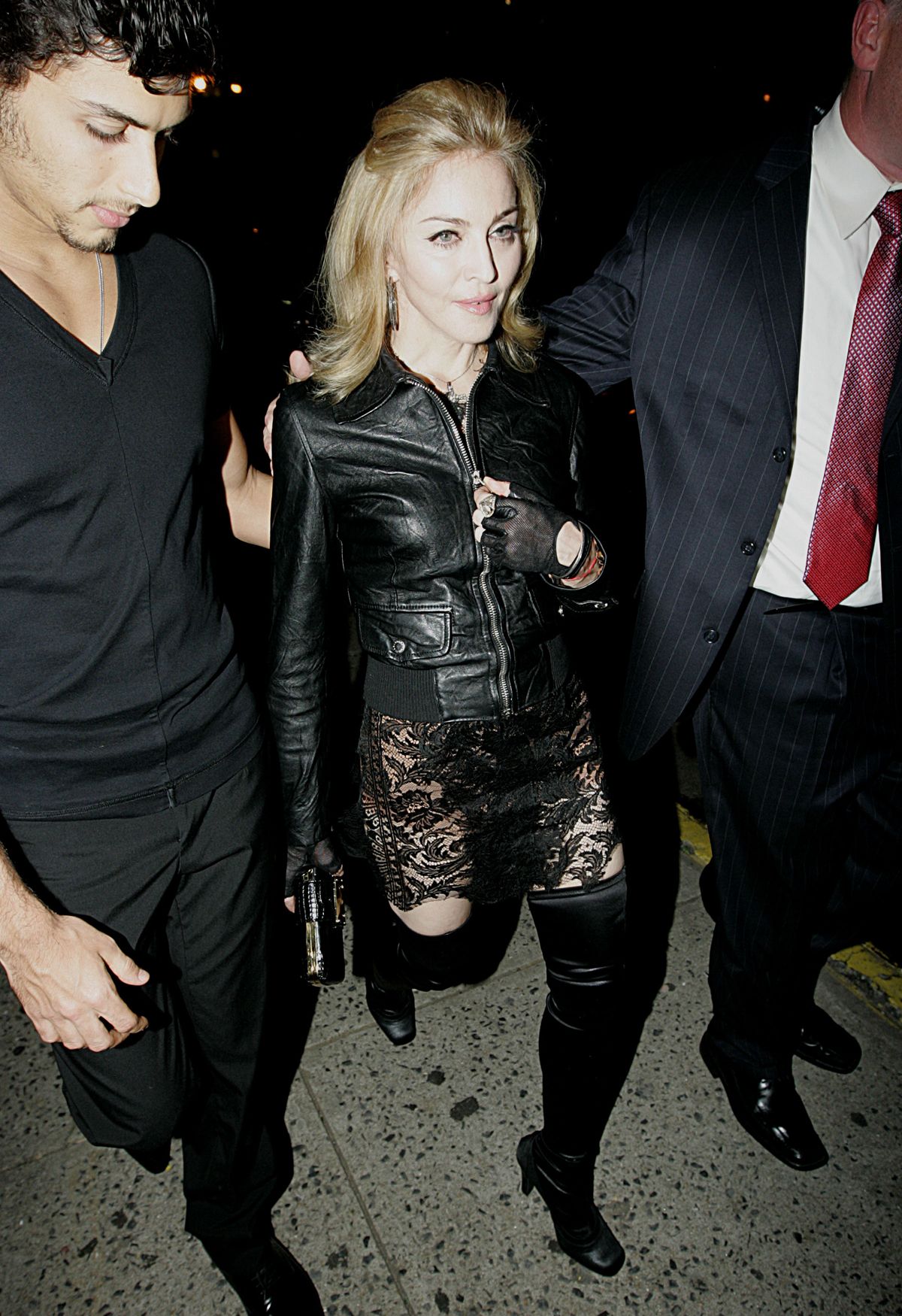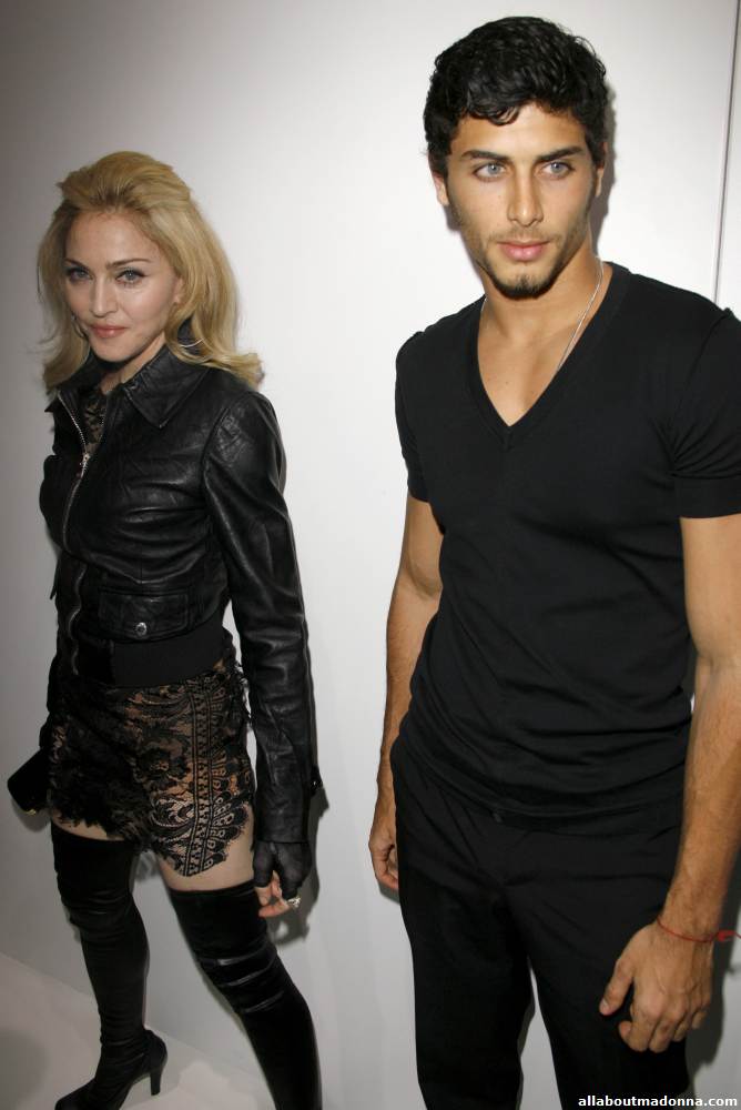 Luego de su presentación emotiva en los premios «MTV VMA» la noche previa, Madonna ha decidido salir a empaparse de las nuevas tendencias de la moda y para ello escogió el desfile de presentación de la colección primavera-verano 2010 del diseñador Marc Jacobs realizado en el «NY State Armory». La diva se mostró con un look más «adolescente» que nunca, con peinado levantado en su parte superior (lo que sería tendencia más adelante) y un traje completamente negro consistente en chaqueta de cuero, falda de encaje y botas hasta las rodillas. La Reina del Pop concurrió acompañada del joven modelo Jesús Luz, con quien está viviendo un apasionado romance y ya en el lugar, se instaló en primera fila como toda «invitada de honor» que es.