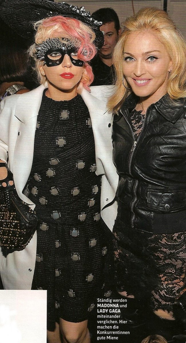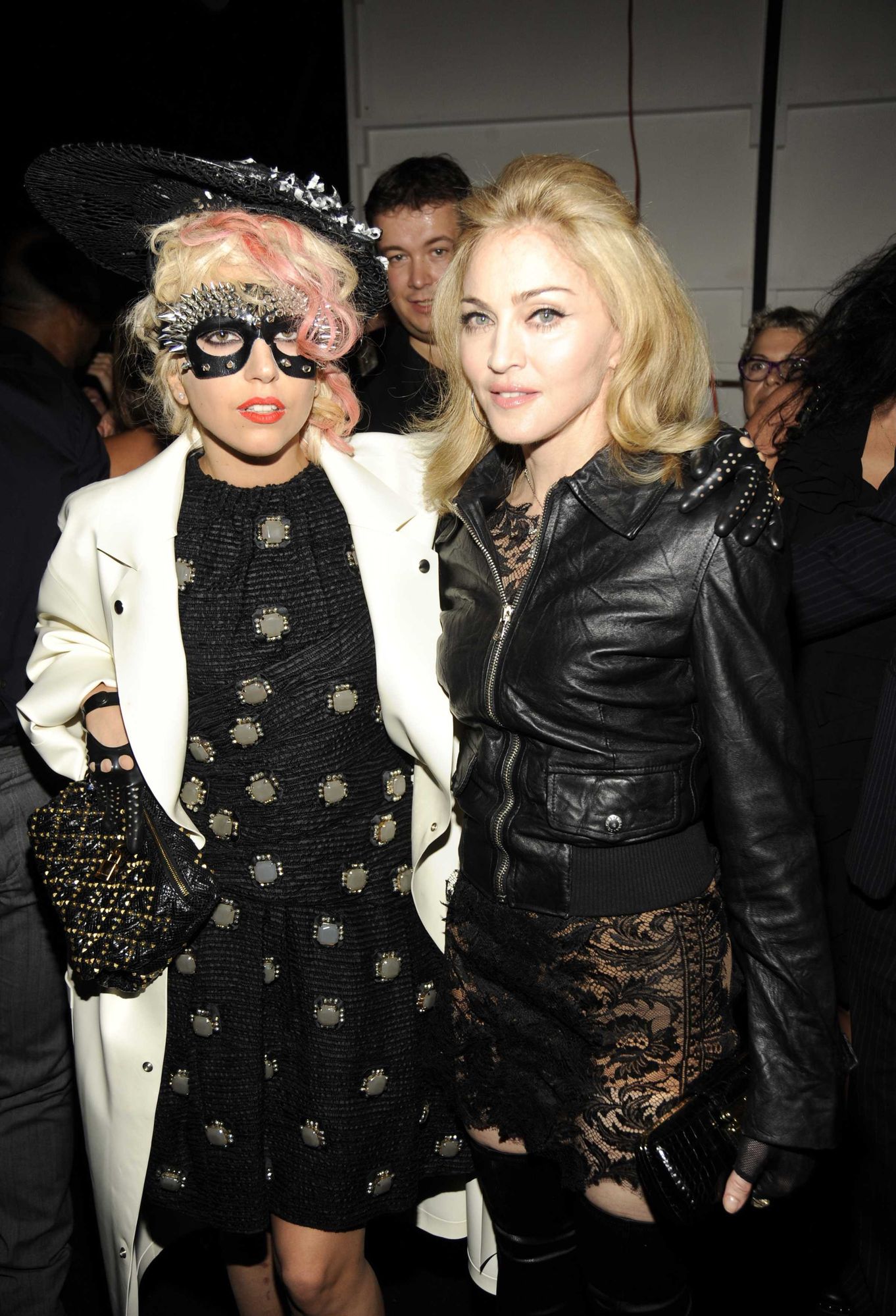 En el backstage, Madonna aprovechó para saludar al diseñador y además encontrarse con la cantante Lady Gaga, con quien posó gustosa para las fotos aplacando así los rumores de una fuerte enemistad entre ellas.