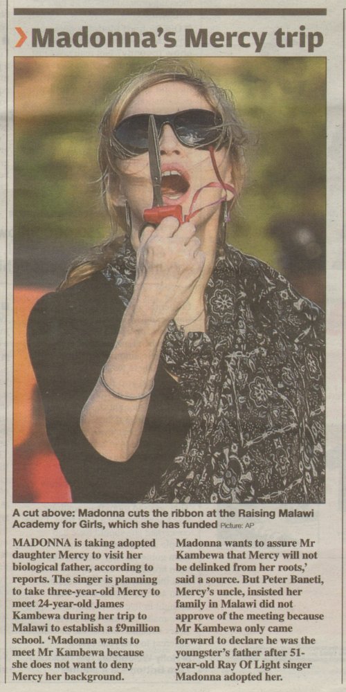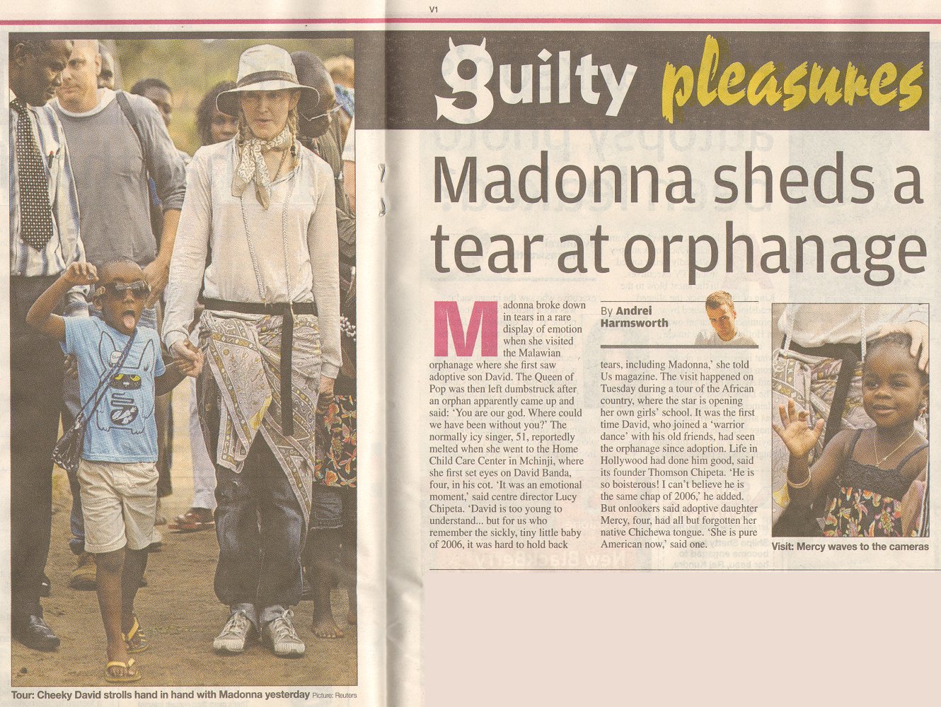 El martes 27 de octubre Madonna y sus cuatro hijos visitaron el centro «Home of Hope» en Mchinji, localidad ubicada a 128 km al oeste de Lilongwe, orfanato en donde estuviera el pequeño David Banda antes de la adopción de Madonna. La directora del Centro, Lucy Chipeta, dijo que le mostró a Madonna y a su hijo David su catre durante su visita al orfanato cerca de la frontera con Zambia.