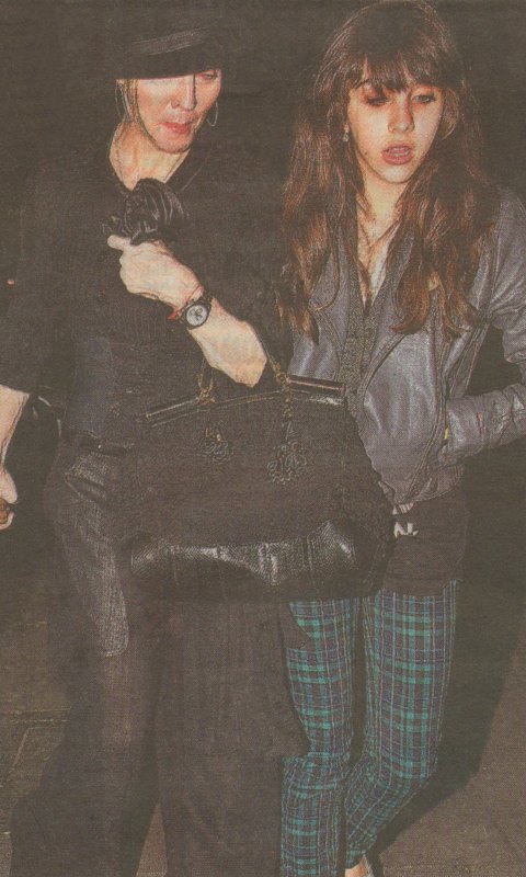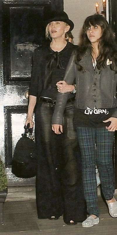 Abajo junto a su hija Lourdes saliendo del «Centro de Kabbalah».