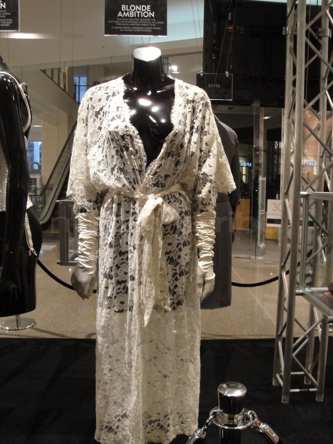 Bata de encaje realizada por Jean-Paul Gaultier; pantalón usado en el comercial «GAP» (2003) y camiseta usada durante la gira «The Re-Invention Tour» (2004)