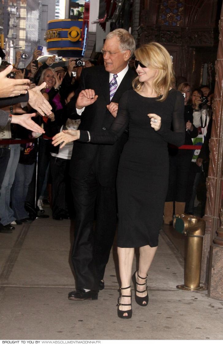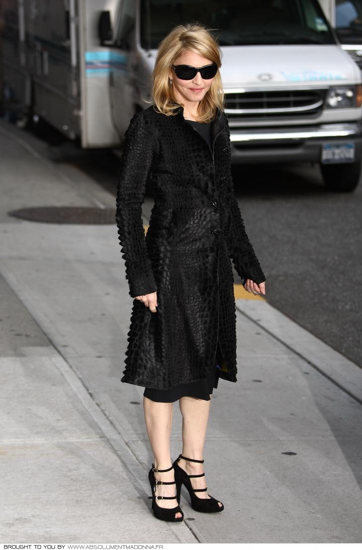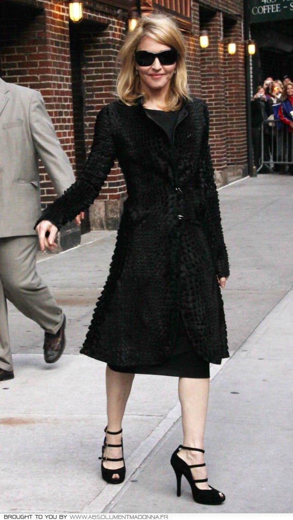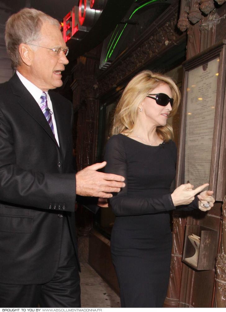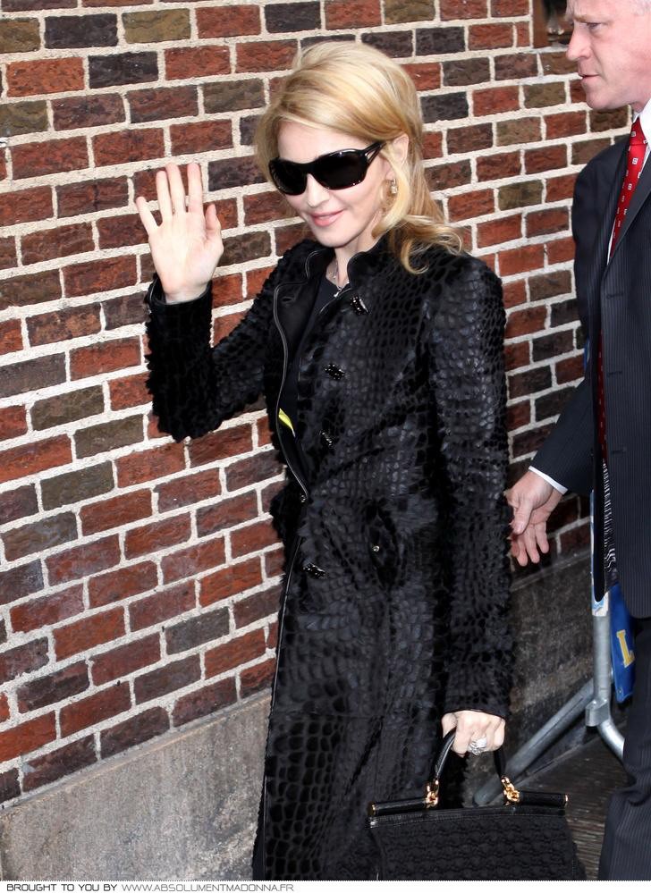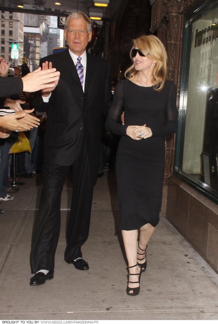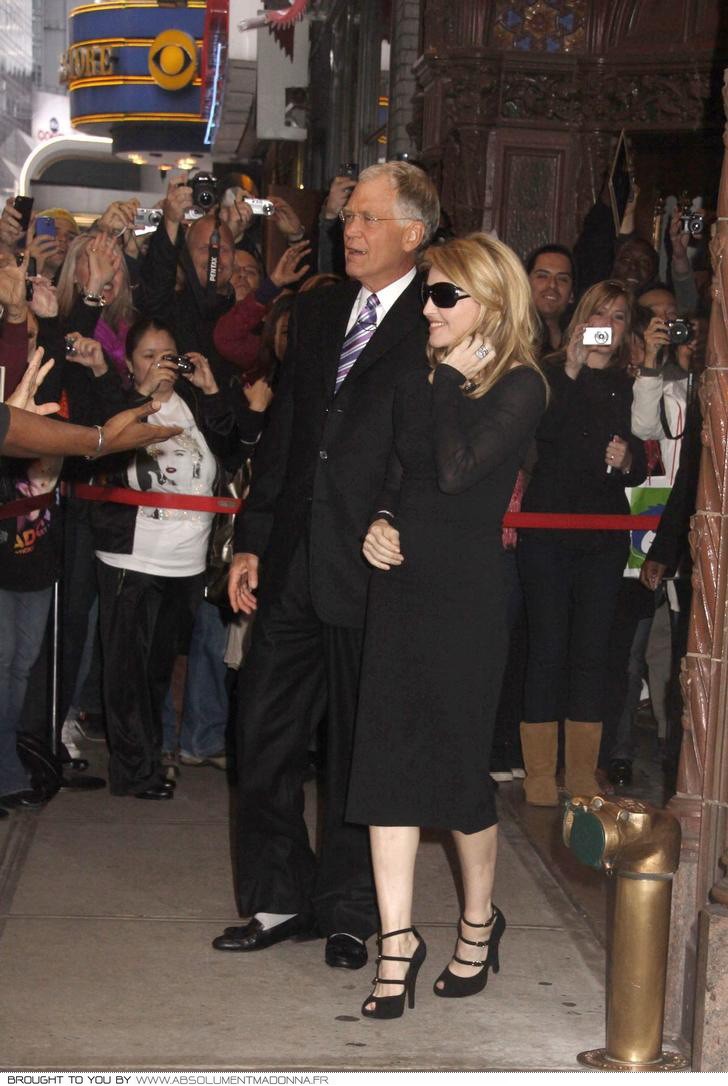 Madonna volvió a aparecer en el programa «The Late Show» del famoso conductor David Letterman en el «Ed Sullivan Theatre» de la ciudad de New York para la emisión del 30 de septiembre. Madonna llegó al estudio sola, vestida completamente de negro con un vestido largo y cerrado y tapado de cuero con infaltables gafas oscuras.