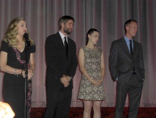 Luego de la proyección del film, se realizó una fiesta privada en el hotel «Claridge» en donde una más relajada Madonna pudo conversar y tomarse fotografías con varias celebridades que no quisieron perderse el evento como la cantante MIA (con quiehabría una colaboración musical en 2012), el diseñador Valentino y los actores Lawrence Fox, Liberty Ross, Richard Coyle, Katie McGrath, entre otros.
