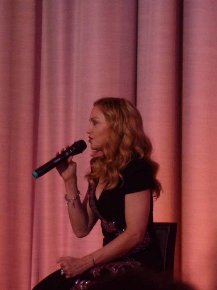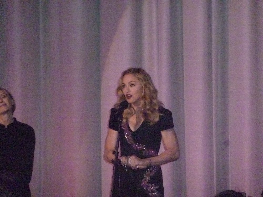 Antes de ubicarse en sus lugares de preferencia en la impresionante sala del «Empire Cinema», Madonna subió al escenario para realizar una breve rueda de preguntas y respuestas sobre su film.