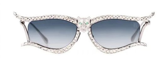 - Gafas de sol modelo «Pantheress» de Anna Karin Carlson con marco con cristales y esmeraldas.