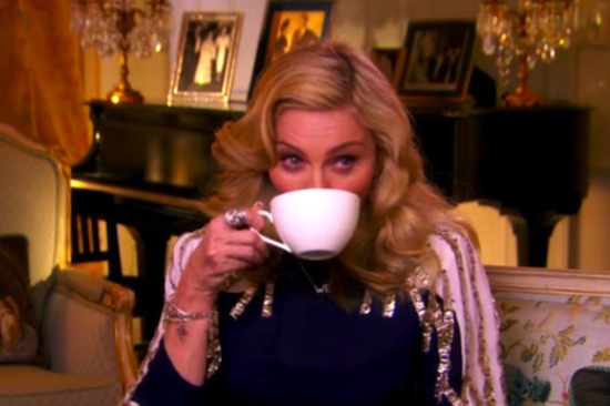 Una de las entrevistas más recordadas de la era «W./E.» fue sin lugar a dudas la realizada por la periodista Cynthia McFadden para el programa «Nightline» de la cadena ABC. El reportaje fue grabado durante la primera semana de enero y transmitido el 12 de enero de 2012, más tarde, la entrevista completa sería re-transmitida por el programa «Good Morning America». Durante el reportaje, Madonna habló sobre la gran cantidad de proyectos artísticos que venía realizando en ese momento, principalmente sobre su film «W./E.» que estaba siendo estrenada a nivel mundial y luego sobre su presentación durante el medio tiempo del «Super Bowl» y el lanzamiento de su disco «M.D.N.A». Sin embargo, hubo un segmento de la entrevista que quedó inmortalizada para siempre gracias a la ingeniosa ironía de Madonna. McFadden comenzó preguntando si Madonna sentía que Lady Gaga la estaba “copiando”. La primera respuesta de Madonna fue elogiosa; llamó a Gaga, “una artista muy talentosa” y dijo que admiraba sus habilidades para escribir canciones y continuó diciendo: “Ciertamente creo que hace muchas referencias a mí en su trabajo. Y a veces pienso que es divertido, halagador y bien hecho”. Madonna dijo que el trabajo de Gaga también parecía ser una “declaración sobre tomar algo que estaba en el Zeitgeist, ya sabes, hace 20 años, darle la vuelta y reinterpretarlo. Hay muchas maneras de verlo. Realmente no puedo enfadarme por eso… porque, obviamente, he influido en ella”. Sin embargo, Madonna se mostró un poco incómoda cuando la conversación giró hacia la canción de Gaga, «Born This Way», que presenta muchas similitudes con su hit «Express Yourself» de 1989: “Cuando lo escuché en la radio… dije… eso me suena muy familiar. Se sintió reduccionista”; cuando le preguntaron si eso era algo bueno o malo, Madonna le dijo a Cynthia que «lo averiguara», antes de sonreír con picardía y tomar un sorbo de su taza de té.