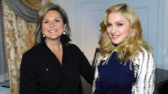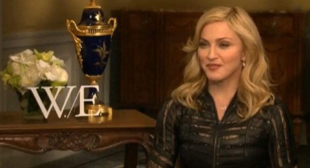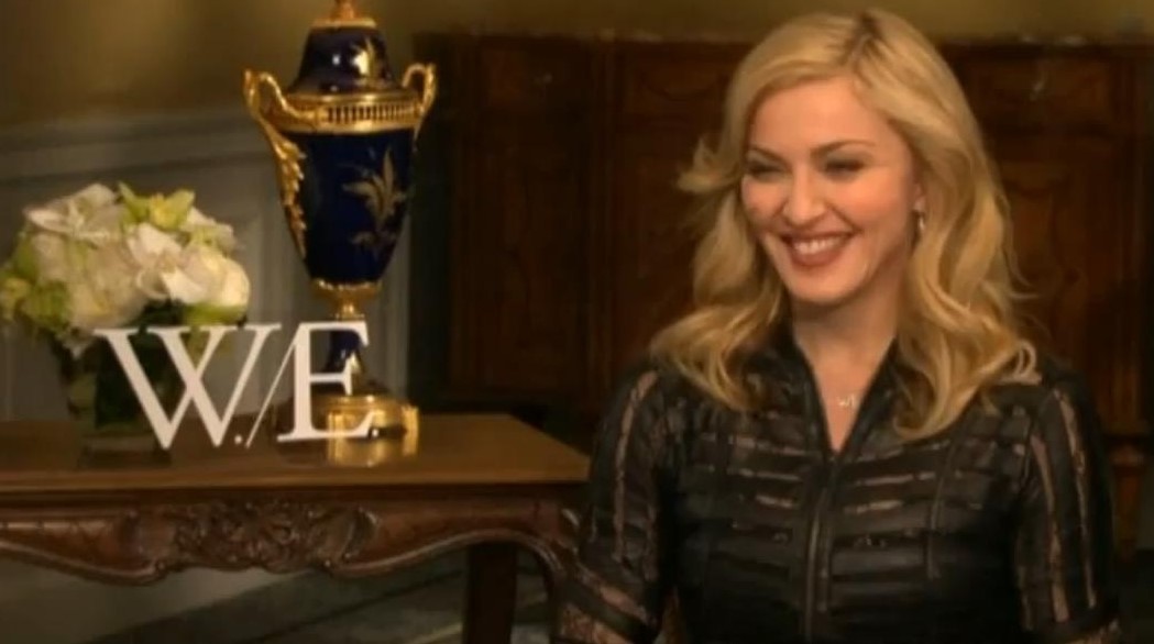 El día que «W.E.» se estrenada en la ciudad de Nueva York, Madonna grabó varias entrevistas de promoción de su film. Una fue exclusiva para la televisión ucraniana con la periodista Kate Osadcha quien le regala a Madonna un chal ucraniano. Madonna lo aceptó a diferencia de las hortensias, que también le presentó el periodista del mismo canal el año anterior durante el «Festival Internacional de Cine de Venecia». «Volé por todo el mundo para estar en esta silla. Y tengo un regalo para ti desde Ucrania», dijo Kate Osadcha, entregándole el regalo a la cantante. «Este es un verdadero chal ucraniano. No encontrarás uno así en Nueva York. Se puede llevar tanto en la cabeza como en los hombros«, añadió Kate Osadcha. La entrevista se transmitió el 29 de enero por toda Euopa.